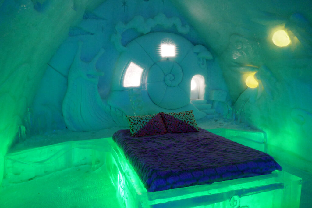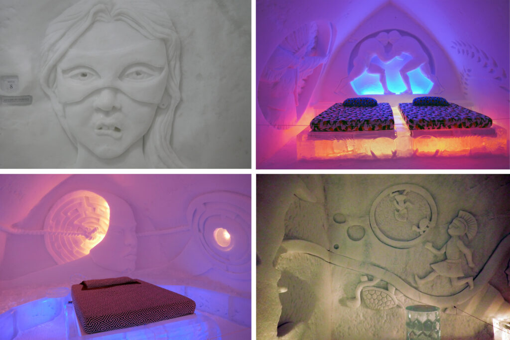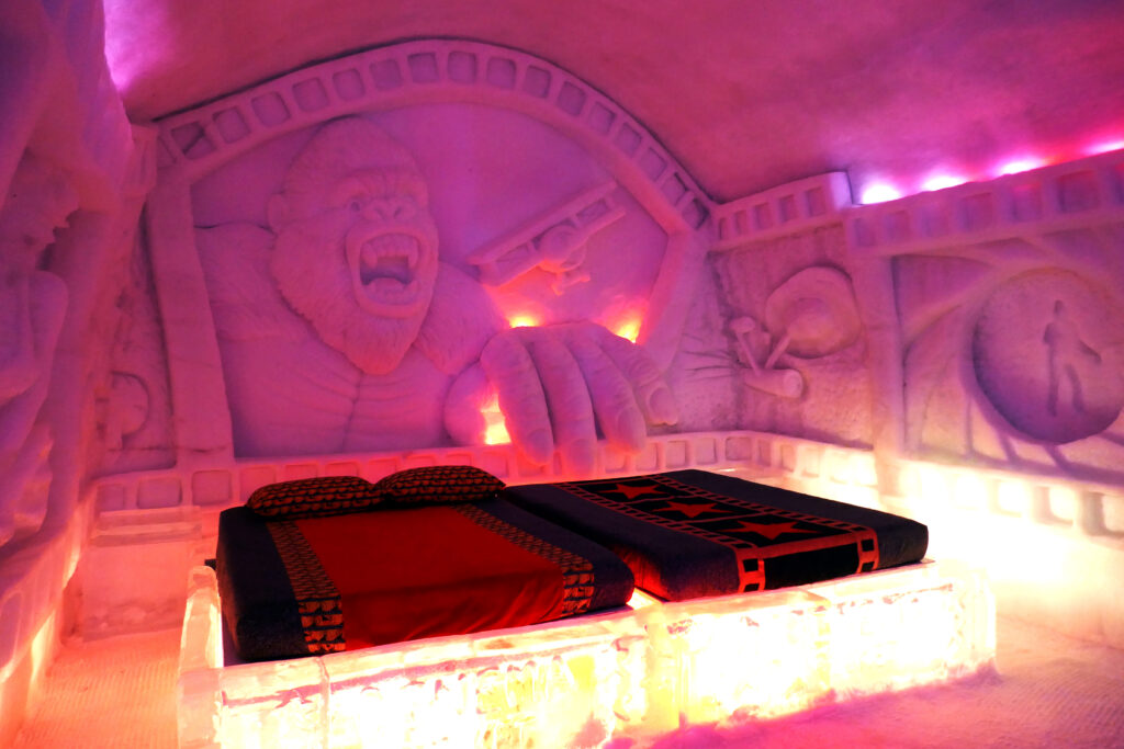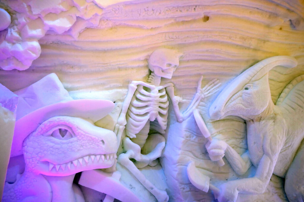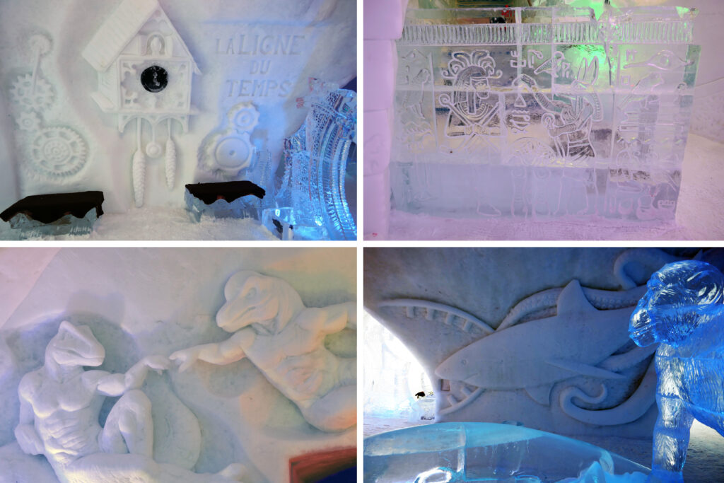 Cette année, l’Hôtel de Glace à Valcartier prend pour thématique : « La Ligne du Temps ». Un thème prometteur, avec quelques belles réalisations ! A priori moins vaste que l’an passé, où nous avions été scotché par le talent des sculpteurs.