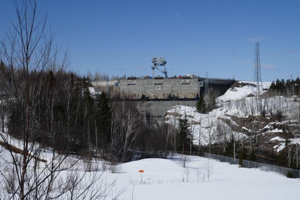 Plus proche de Baie-Comeau, nous passons devant le plus modeste barrage Manic 1, situé au bord de la route 138. Il est le plus petit des 7 barrages du complexe issu du Projet Manic-Outardes érigées durant la période dite de la Révolution Tranquille, au tournant des années 1960. Nous passons également au village de Chutes-aux-Outardes voir les restes de l’ancienne centrale Outarde 1 de 1937, qui fut remplacée par les 3 centrales Outardes 2, 3 et 4 du projet.