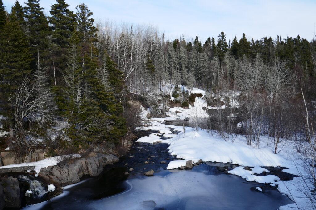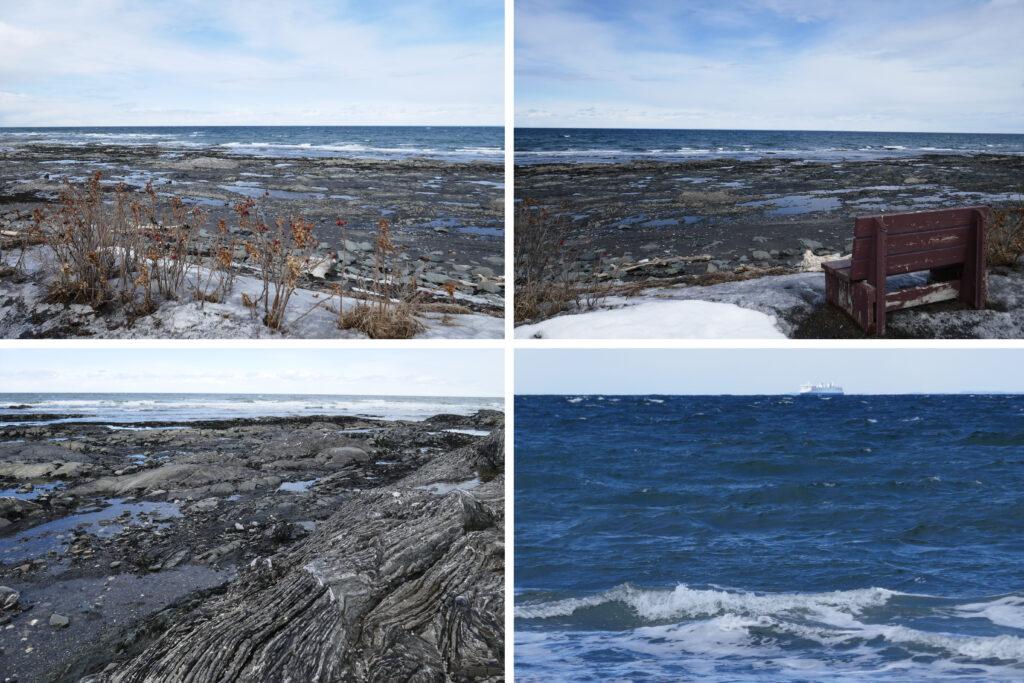 C’est ce que nous constatons en prenant une autre portion du Sentier des Embruns le lendemain. Longeant la petite rivière Amédée après avoir pris la passerelle du même nom, cette portion nous mène ensuite jusqu’en bordure de l’estuaire. Les épinettes noires, les sapins baumier, les pins gris, les bouleaux à papier et les peupliers faux-tremble se fondent harmonieusement avec la roche.