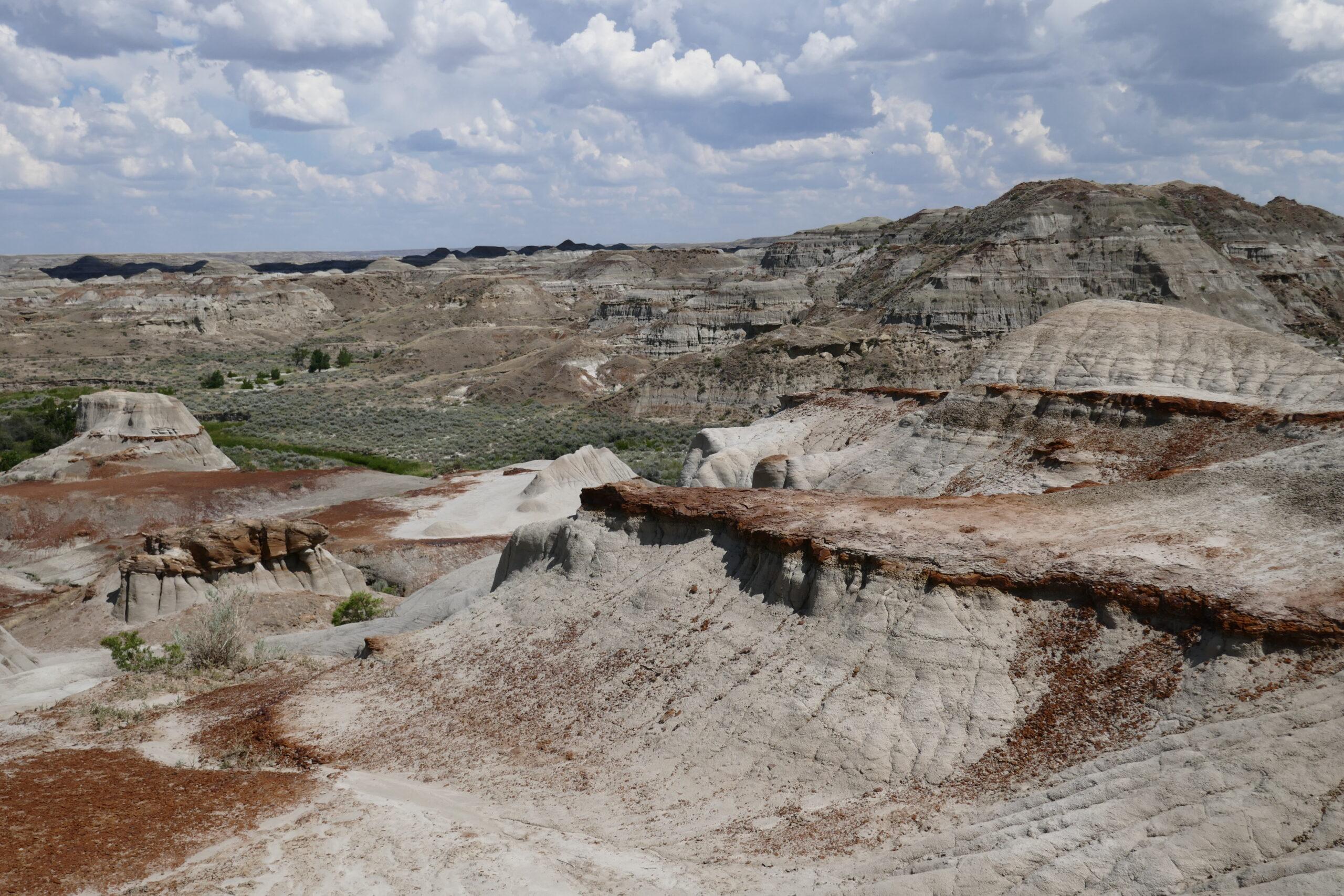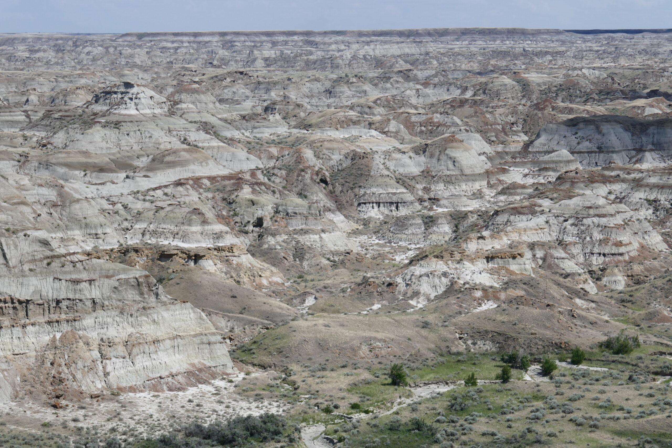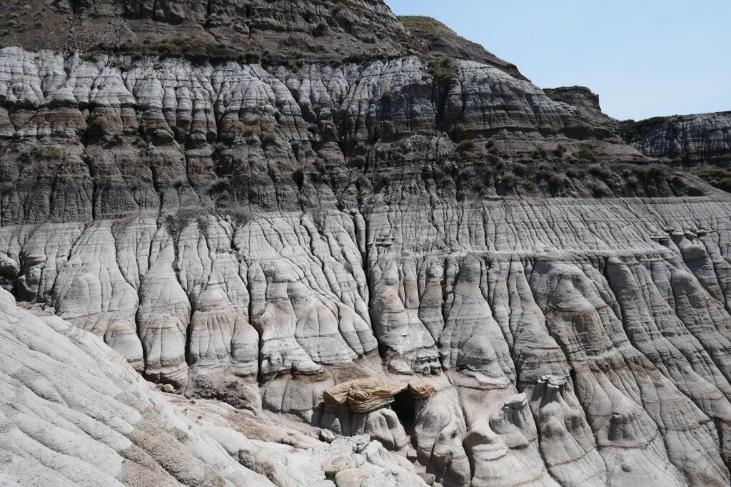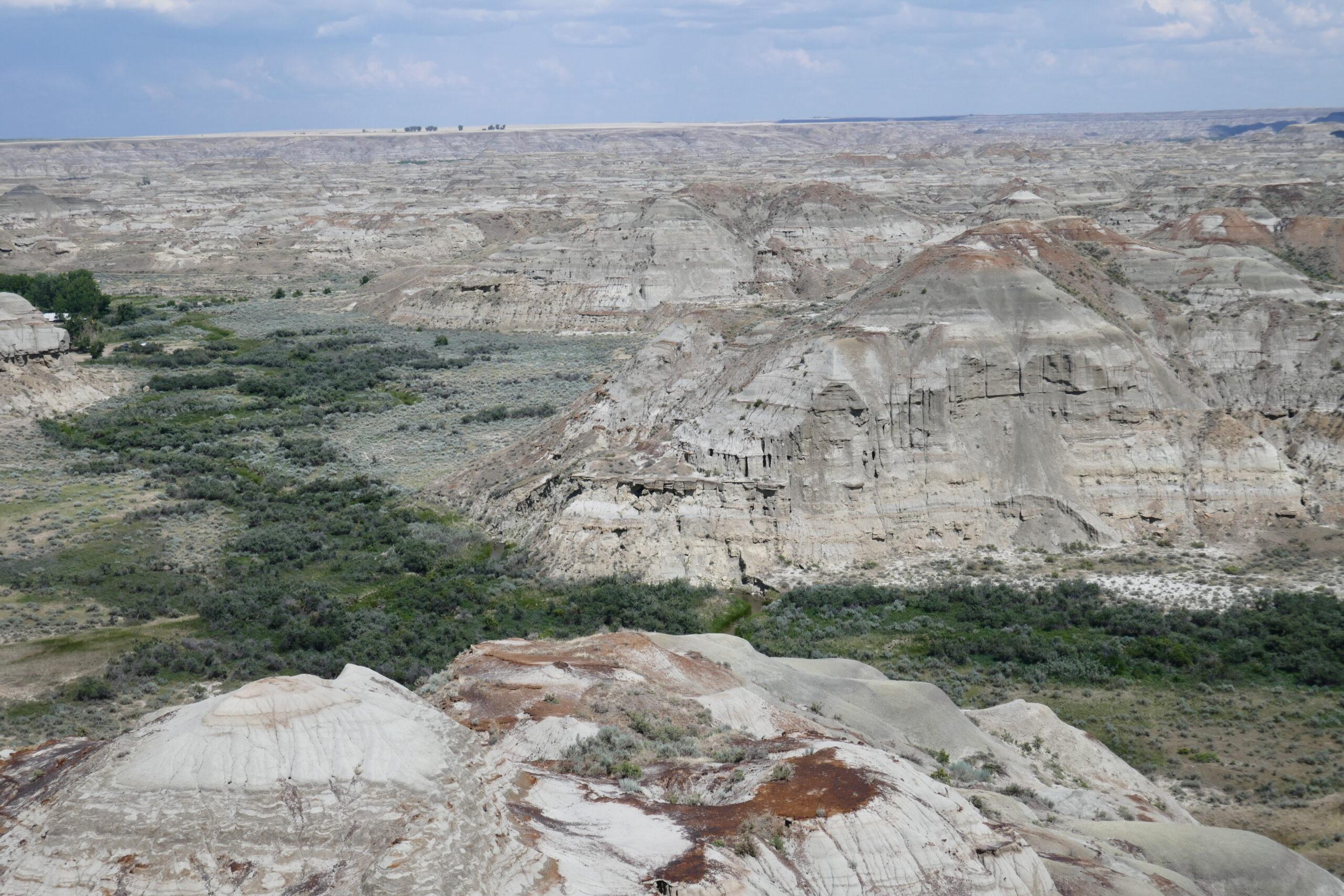 Avant de quitter la région des Badlands, nous passons par ce canyon typique de ses paysages. Si, lorsqu’on vient du Dinosaur Provincial Park, il peut paraitre moins impressionnant, il n’en demeure pas moins assez phénoménal. Passé le sentier principal, il est possible de se perdre dans les méandres de ce canyon qui, vu du ciel, aurait une forme de fer à cheval. Lors de notre arrivée, le soleil ne tapait pas, et les reliefs étaient moins mis en valeur. Lorsque l’astre s’est découvert, on a à nouveau ressenti cette sensation d’être dans un monde à part, dans lequel la survie d’un être humain tiendrait du miracle.
