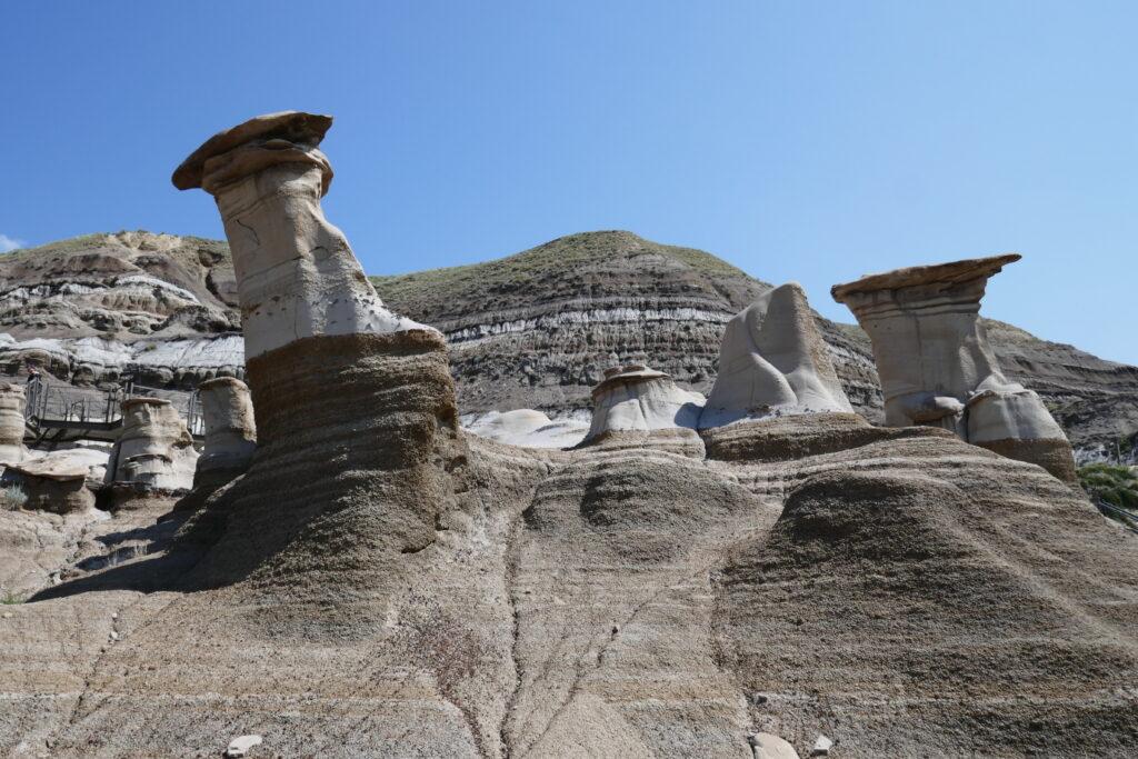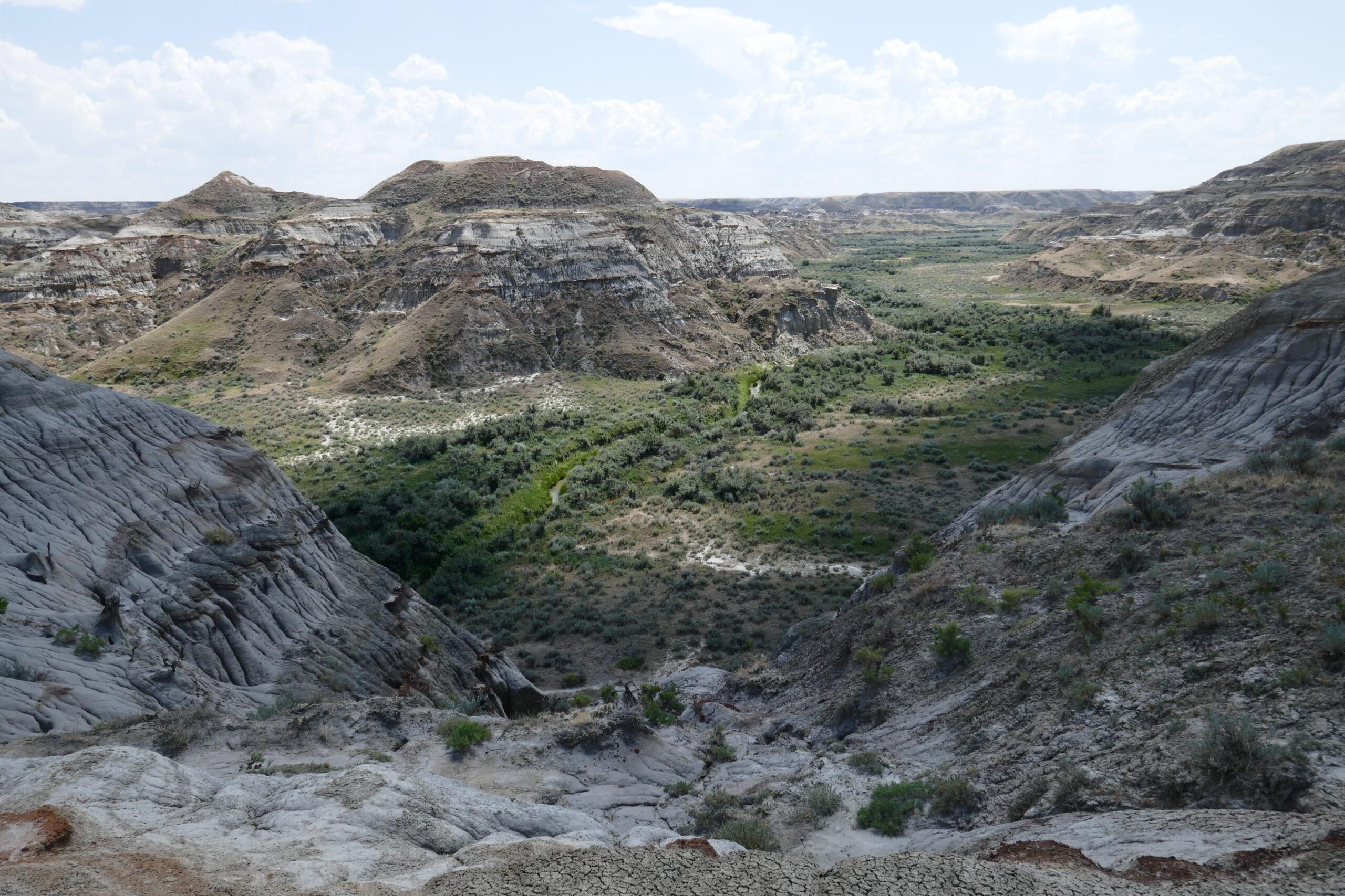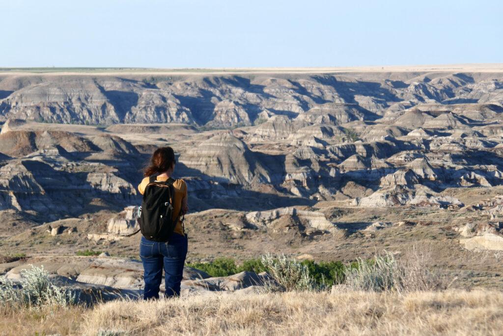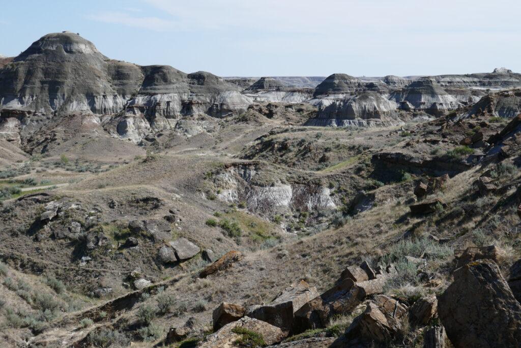 Avant de quitter la région des Badlands, nous passons par ce canyon typique de ses paysages. Si, lorsqu’on vient du Dinosaur Provincial Park, il peut paraitre moins impressionnant, il n’en demeure pas moins assez phénoménal. Passé le sentier principal, il est possible de se perdre dans les méandres de ce canyon qui, vu du ciel, aurait une forme de fer à cheval. Lors de notre arrivée, le soleil ne tapait pas, et les reliefs étaient moins mis en valeur. Lorsque l’astre s’est découvert, on a à nouveau ressenti cette sensation d’être dans un monde à part, dans lequel la survie d’un être humain tiendrait du miracle.