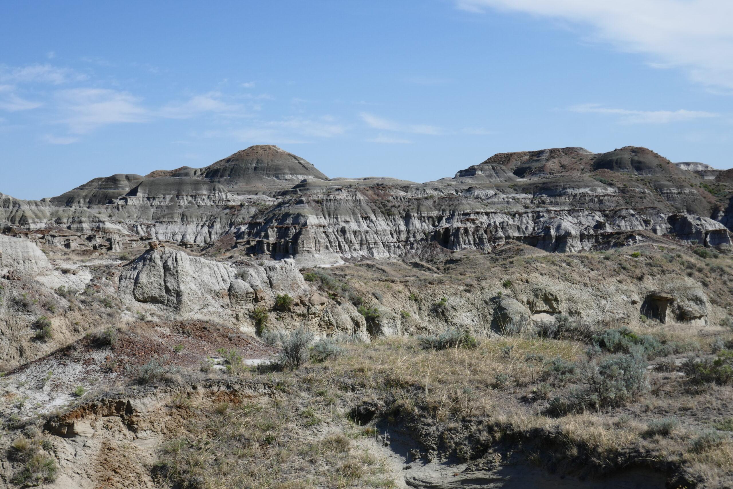 L’entrée dans le parc provincial se fait au niveau du Prairies trail, qui, en 300 mètres, donne un premier aperçu des Badlands. Impressionnant dès l’arrivée, on sait à quoi s’attendre ! On est ici au niveau de la prairie, et on constate bien que les reste du parc plonge en contrebas. Les Badlands, c’est une vallée creusée par les glaciers, de laquelle subsistent des centaines de hauteurs où l’érosion fait son œuvre : 4 mm par an à l’heure actuelle ! Imaginons un instant les premiers colons européens à débarquer ici, en quête soit de métaux précieux, soit d’une terre à cultiver : on comprend qu’ils aient appelé ce type de paysage « mauvaises terres » !
