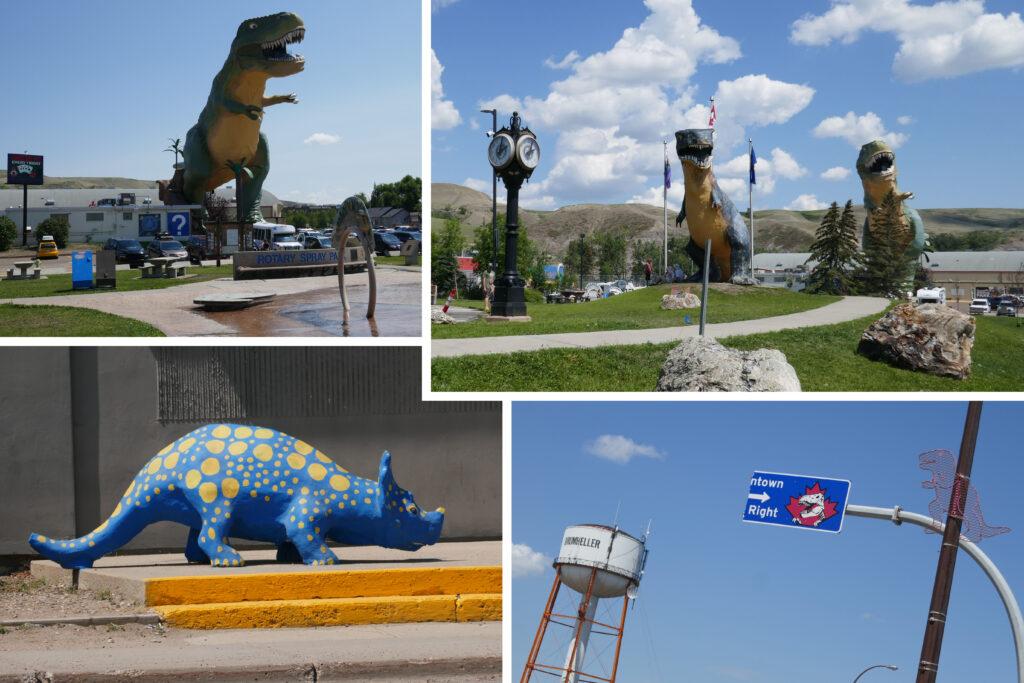 Drumheller est donc la principale ville de la région avec près de 8 000 habitants. Après le plus grand orignal du monde (Moose Jaw, SK) puis le plus grand teepee du monde (Medecine Hat, AB), nous voici devant le plus grand dinosaure du monde ! En-dehors de cette attraction, dans laquelle on peut monter si l’on veut perdre 5$, la ville est vraiment à l’ambiance américaine. On peut aimer, mais ce n’est pas notre cas ^^.