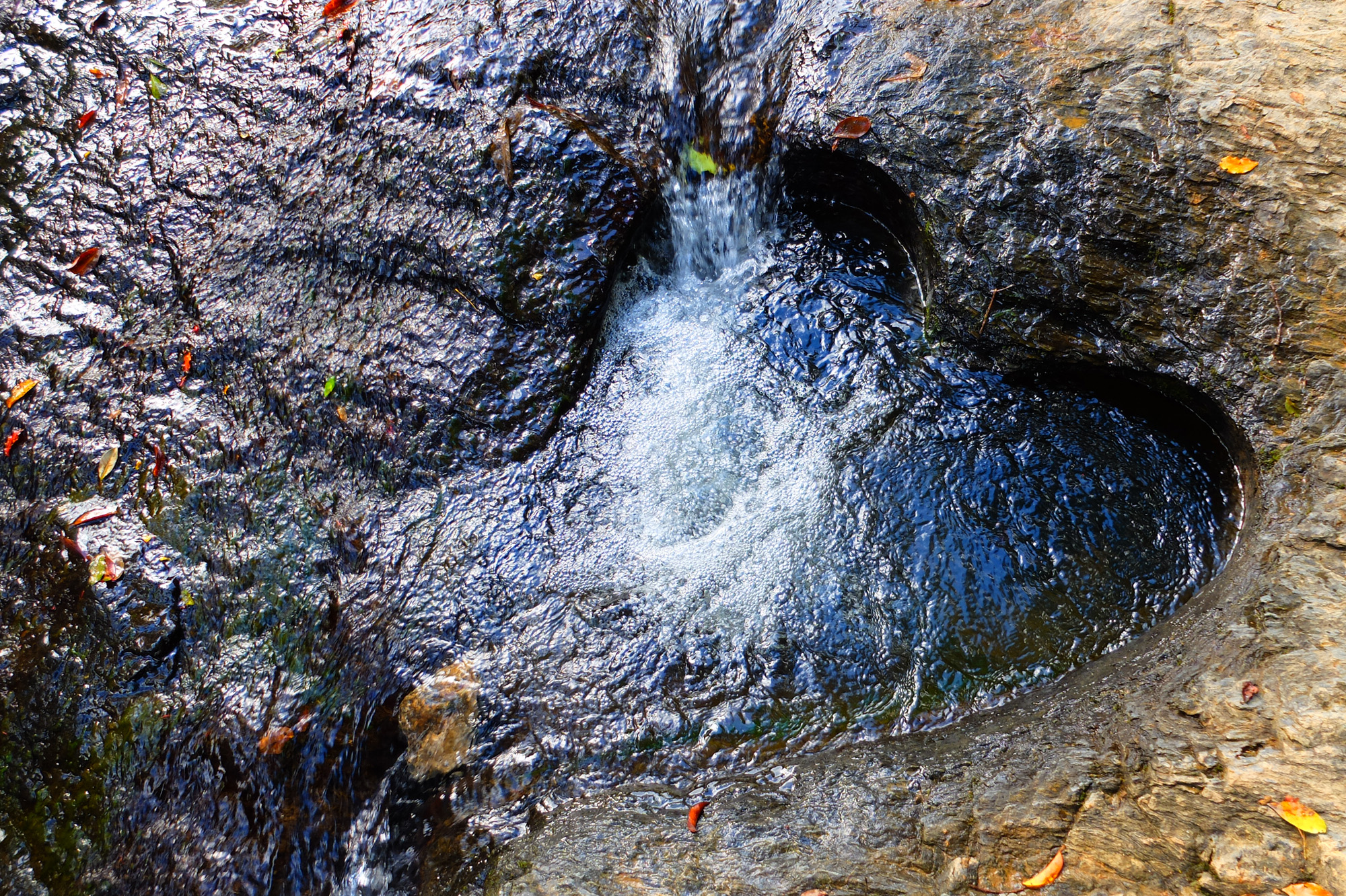Puis, petit stop à l’air de Kutuö, qui offre un point de vue sur les montagnes épargnées. Peu après, c’est la route du col qui nous amène vers Sarraméa. Là, nous poussons jusqu’au Trou Feuillet, mini-cascade avec un trou d’eau -pour un soi-disant incontournable, très décevant, en fait.