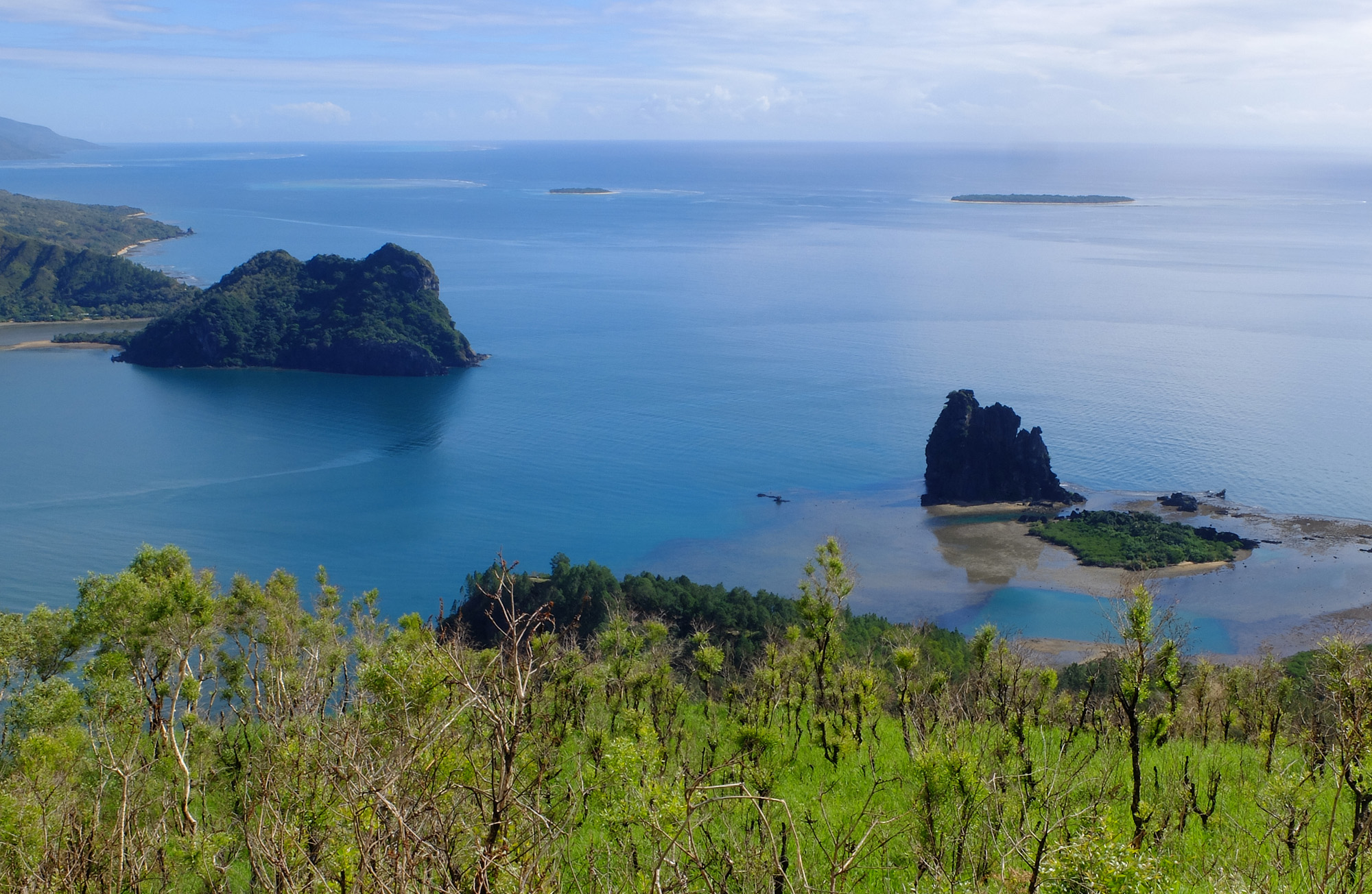 Bref, plongée devant l’îlot Hienga, juste en face du centre de Babou Plongée / camping. Nous ne sommes que 2 pour les baptêmes du jour. Partie théorique, 10 minutes de bateau, et hop ! Amandine à l’eau. 20 minutes plus tard, c’est Olivier qui saute, après avoir pu contempler l’îlot, pour lequel les accès sont gérés par la tribu locale. Douleur aux oreilles habituelle (pour Olivier), poissons et quelques coraux.