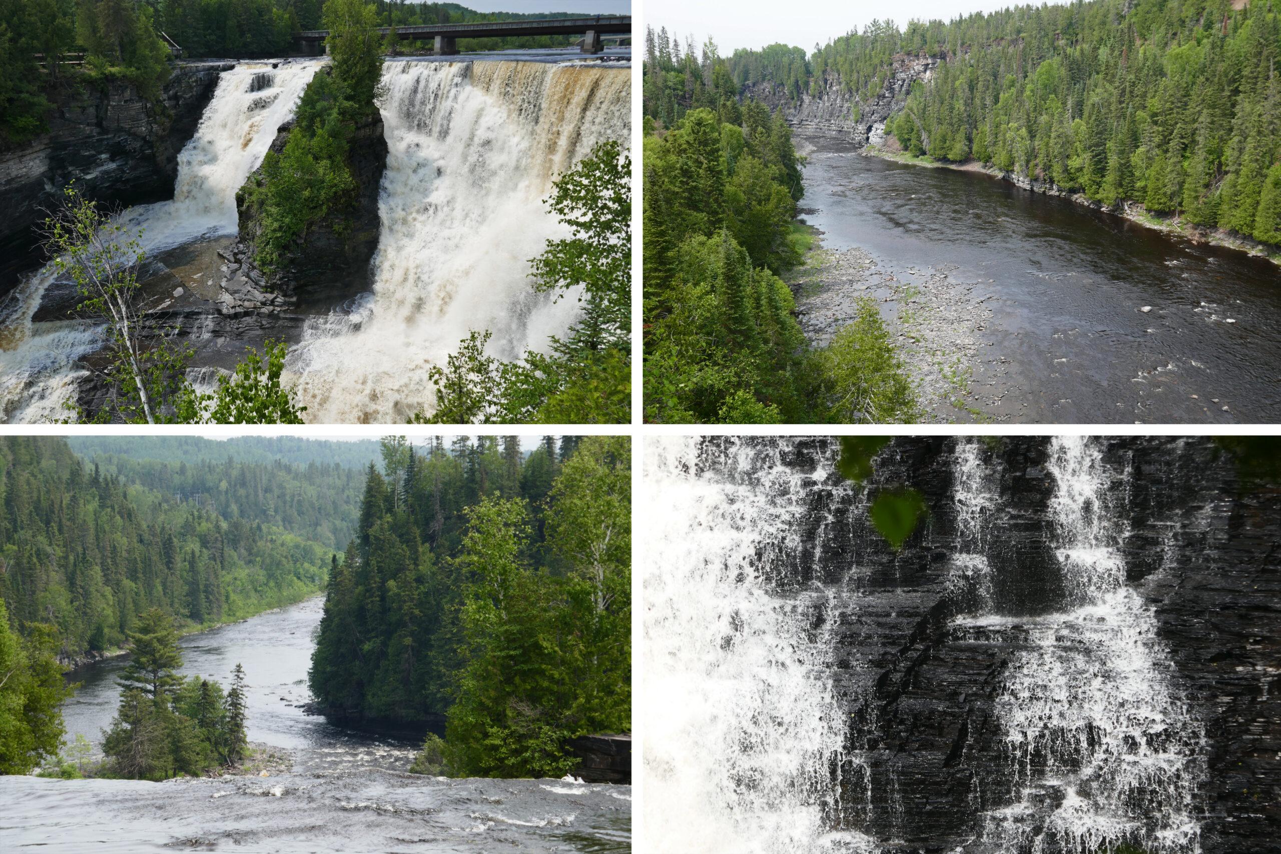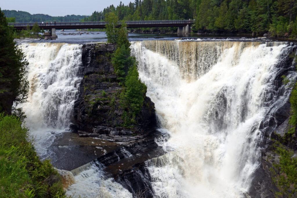 Nous reprenons la route et stoppons rapidement : il faut rouler seulement 25 km pour atteindre cette superbe chute d’eau de Kakabeka, haute de 40 mètres. La passerelle qui l’enjambe offre des vues sur la gorge. À l’époque du canotage, il s’agissait du premier obstacle nécessitant un portage au départ de Fort William.