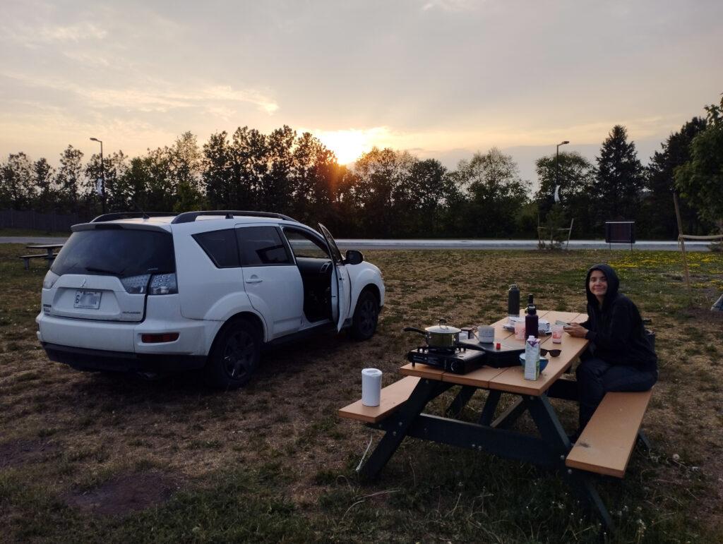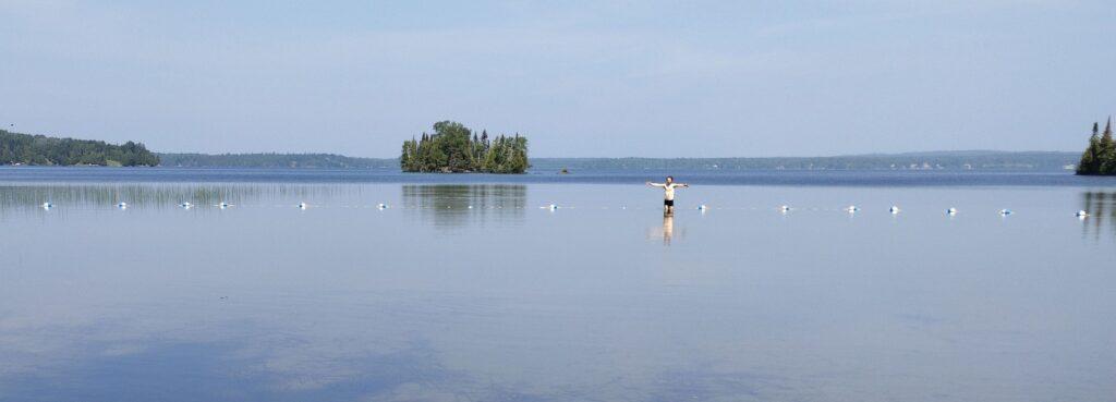Étant parti tard et ayant franchement chaud, nous stoppons au Parc provincial Aaron pour la nuit. Avantage : la baignade dans le lac Thunder au matin :). Fait notable, les moustiques ici sont de sortie strictement au crépuscule et à l’aube. Par contre, ils compensent et tentent de faire leur journée entière en se déchaînant sur cette période 👿 !