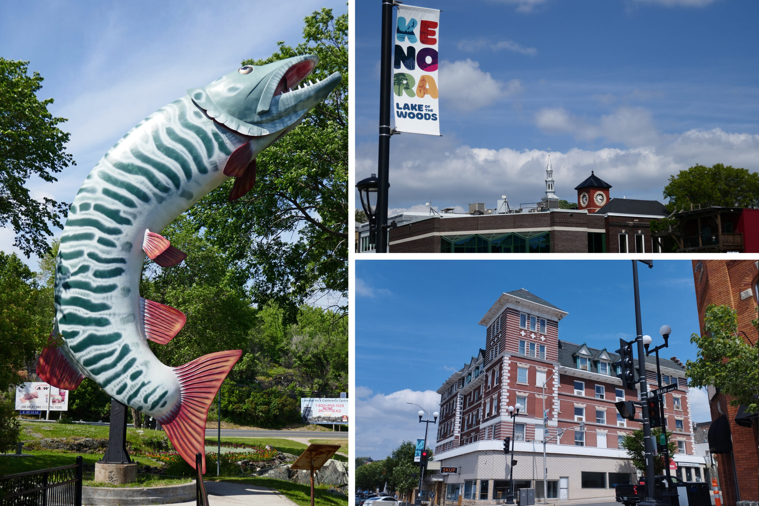 Dernière ville en Ontario, Kenora (15 000 habitants) est située au bord du Lake of the Woods, un lac de 110 km de long et de large qui assure la frontière au sud avec le Minnesota voisin (États-Unis). En nous promenant, on constate qu’un stationnement à bateaux permet aux habitants des quelques 14 552 îles du lac de venir s’approvisionner en ville (on simplifie, toutes ne sont pas habitées ! 😉 ).