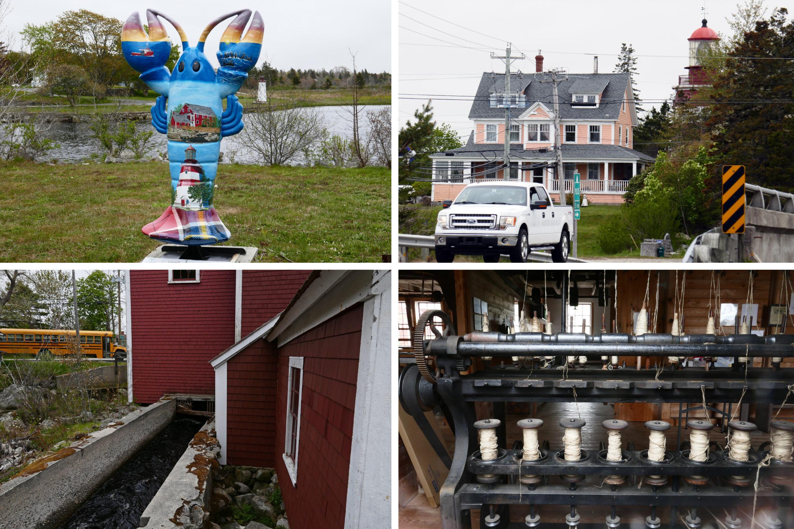 La route de la façade est-Atlantique se termine à Barrington. Le village a accueilli un moulin à carder la laine (Barrington Woolen Mill), désormais transformé en musée -évidemment fermé, mais on peut voir à travers la vitre ! De l’autre côté du pont, la Old Meeting House l’une des plus anciennes salle de culte non-conformiste du pays, et une réplique du phare de Seal Island.