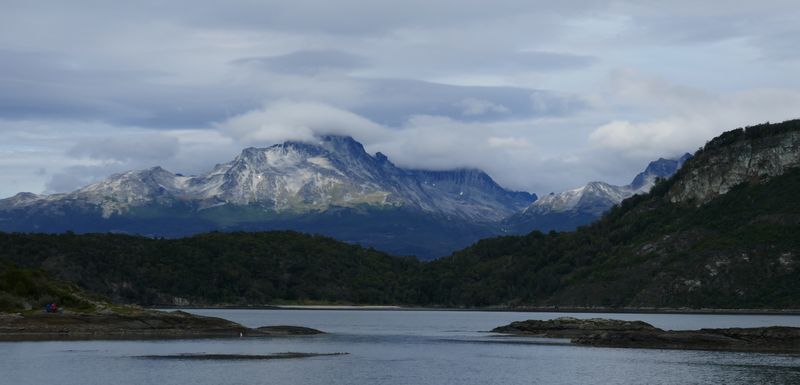 Si le départ du sentier est agréable, en longeant le canal Beagle, il devient finalement assez monotone au fur-et-à-mesure que l’on progresse dans la forêt. La vue sur les sommets des Andes chilienne, de l’autre coté du canal, est malheureusement globalement bouchée par les nuages qu’ils ont accrochés.