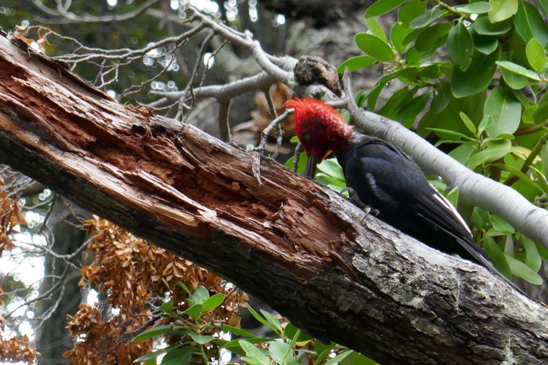 Heureusement, la fin du sentier nous permet d’observer des Pics de Magellan, sympathique oiseau à la tête rouge (pour les mâles) qui piquent frénétiquement sur les troncs dans un bruit assez joyeux.