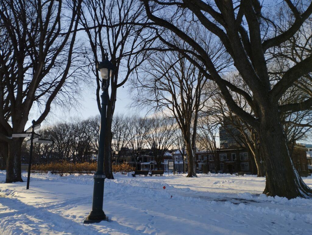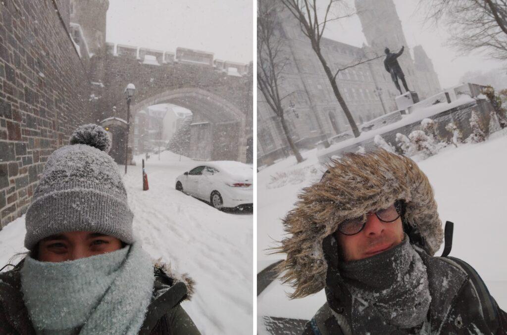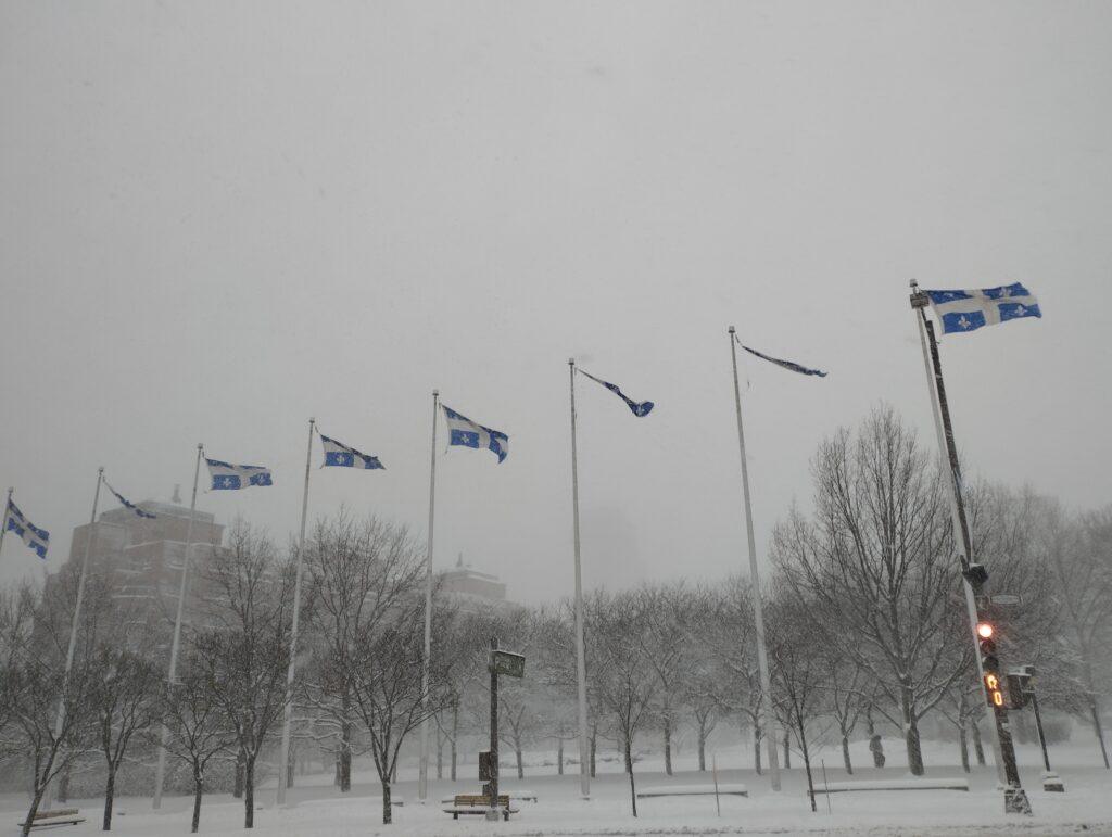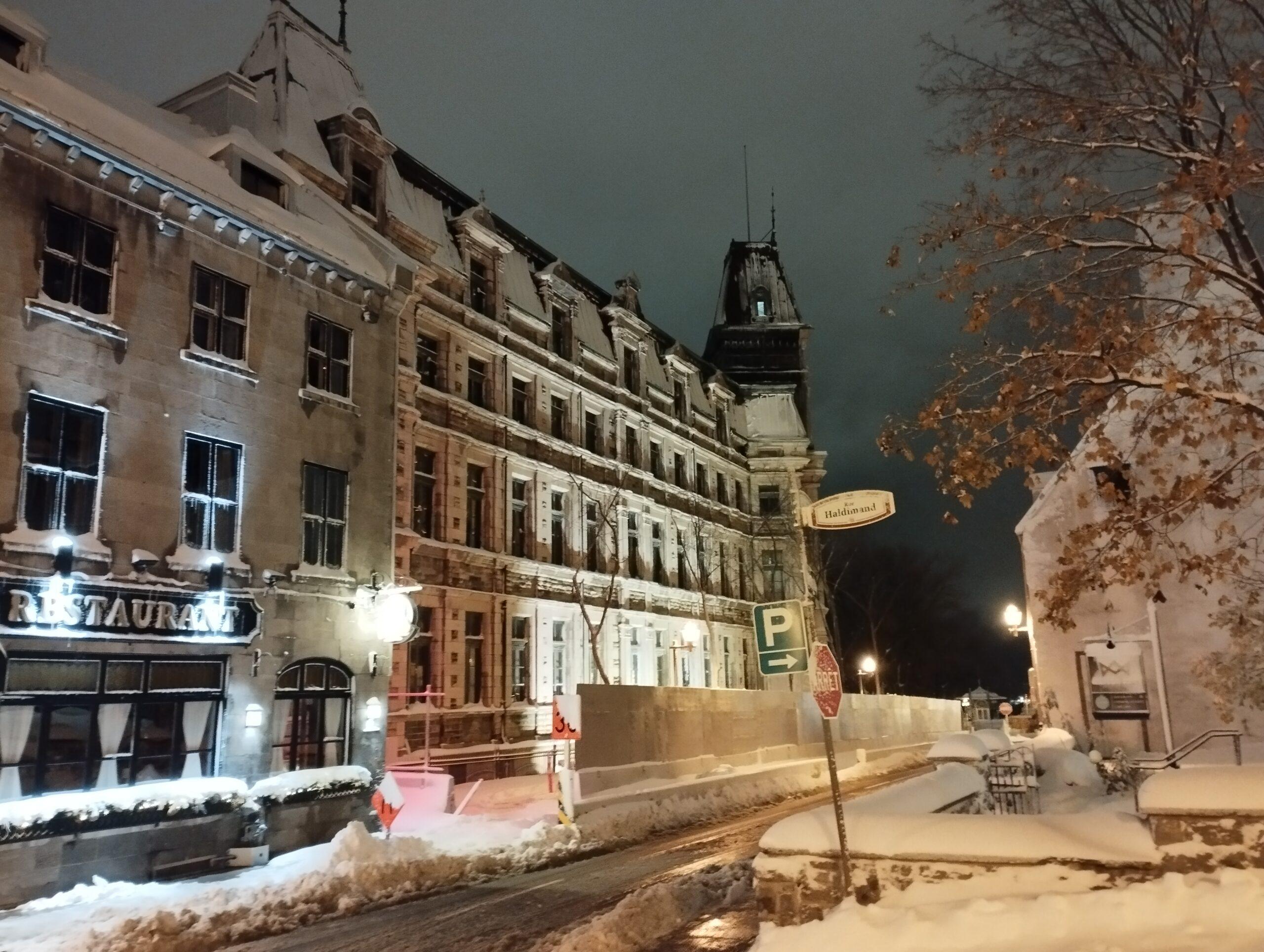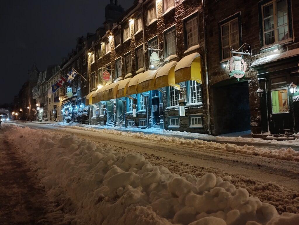 Le soir, malheureusement, les déneigeuses sont passées. Je dis malheureusement car cela veut dire que des énormes tas de neige bordent les routes, y compris au niveau des passages piétons : et qu’on se débrouille bien comme on peut pour traverser les avenues via des congères artificielles boueuses… En fait, le vrai problème de la neige à Québec, c’est pas la neige elle-même, mais bien une nouvelle fois cette propension au tout-voiture !