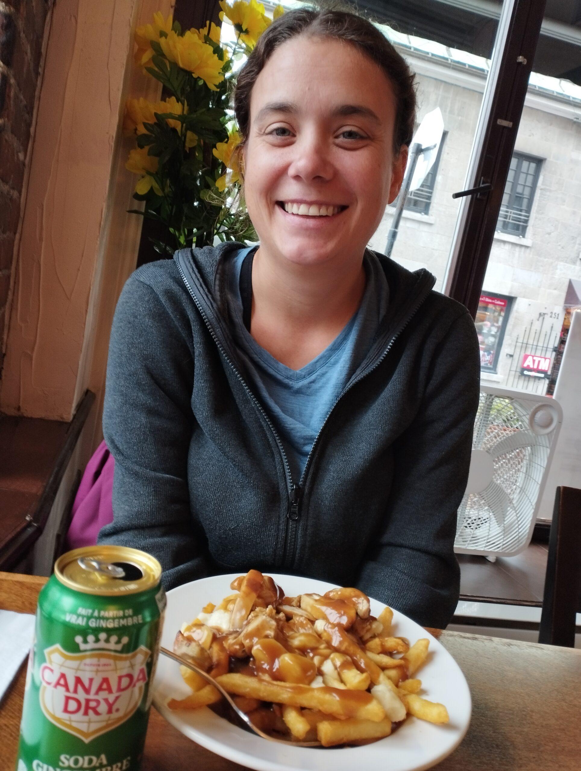 Arrivée Place Jacques-Cartier, haut lieu des resto touristiques du Vieux-Montréal. Ce sera pizza pour Olivier, et une première poutine pour Amandine !
