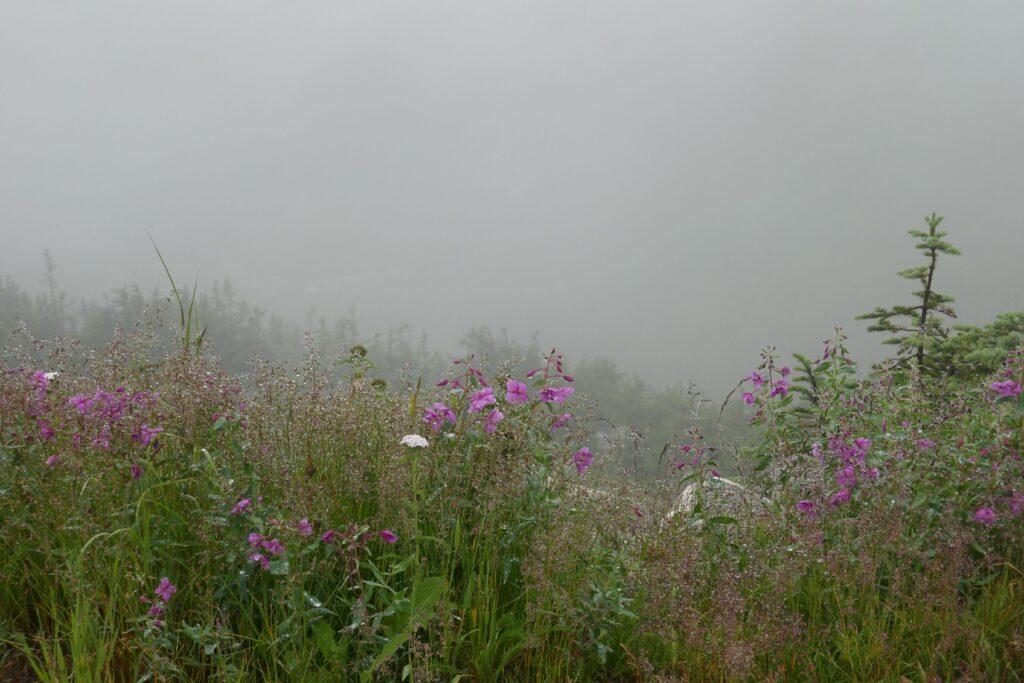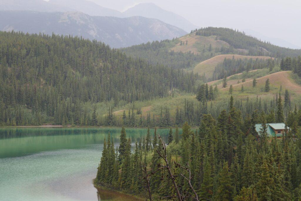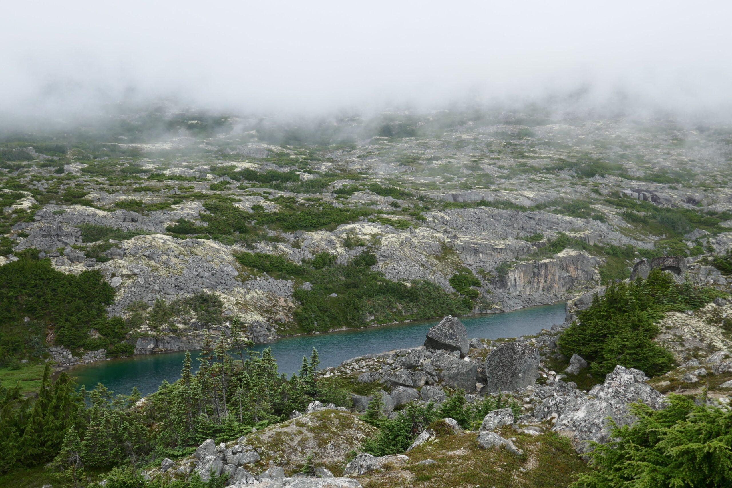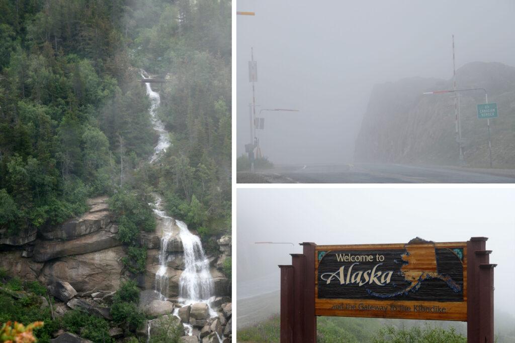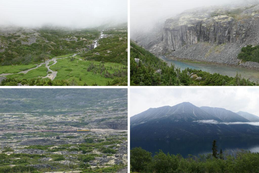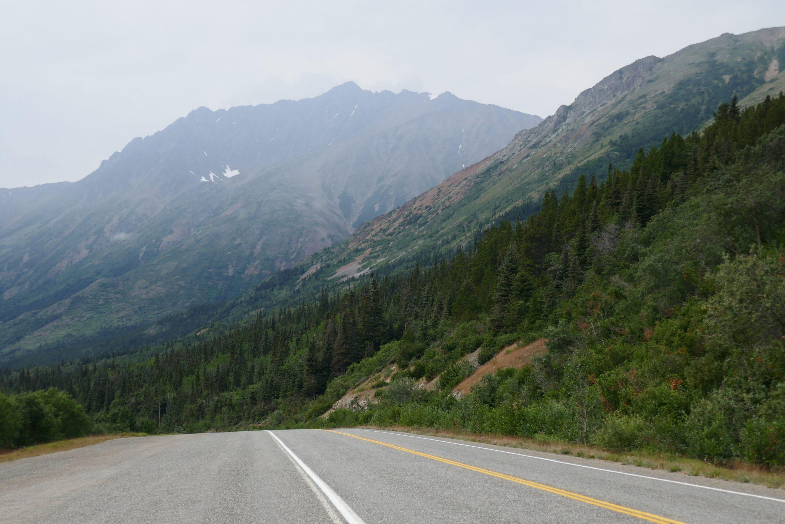 Quittant Skagway en direction de Whitehorse, nous ne profitons pas beaucoup des paysages le long de la route du Klondike sud avant la frontière Alcan (Alaska/Canada). En effet, le plafond nuageux est extrêmement bas et les pluies intermittentes. C’est seulement entre le poste de douane américain et le poste de douane canadien de Fraser que le temps devient plus propice à la contemplation. Dès lors, c’est une succession de superbes lacs pris entre les rochers recouverts de mousse. On s’arrête littéralement toutes les 5 minutes pour profiter des vues entre le sommet du col et Summit Lake.