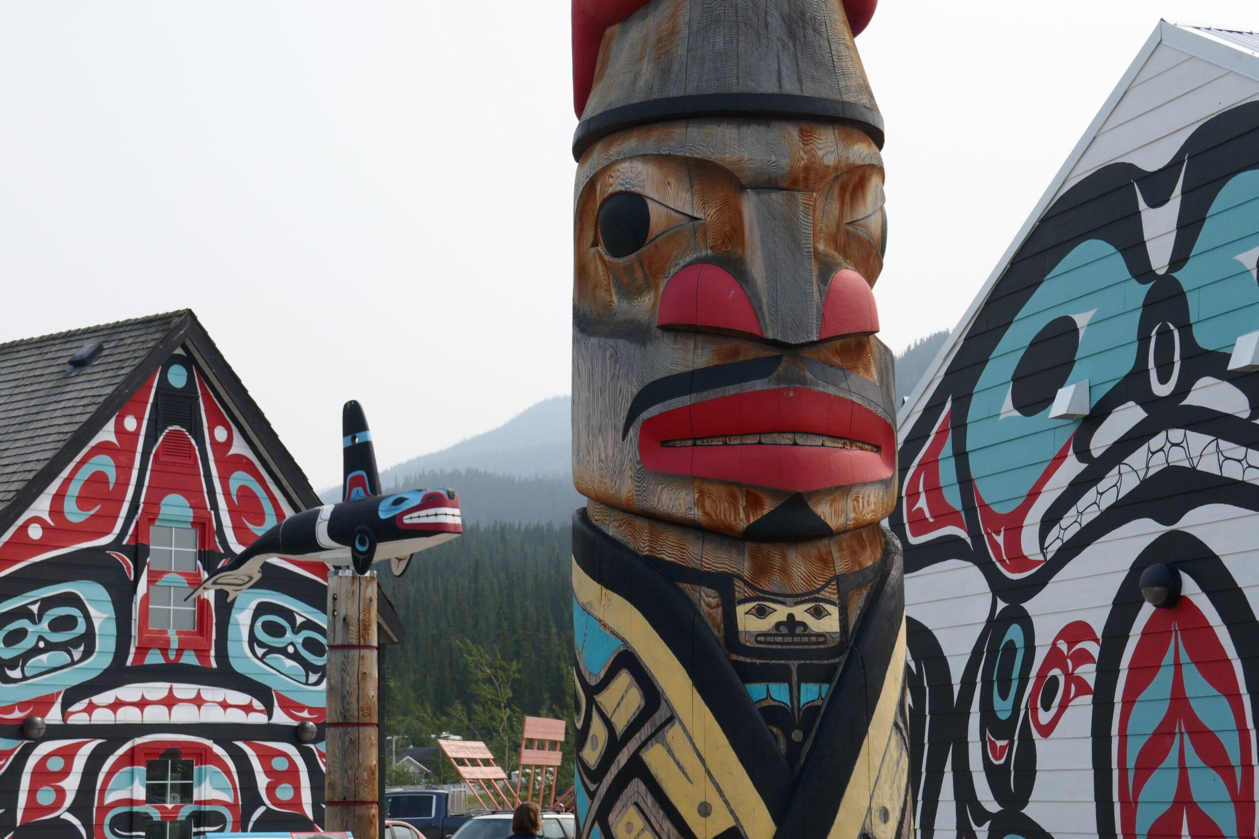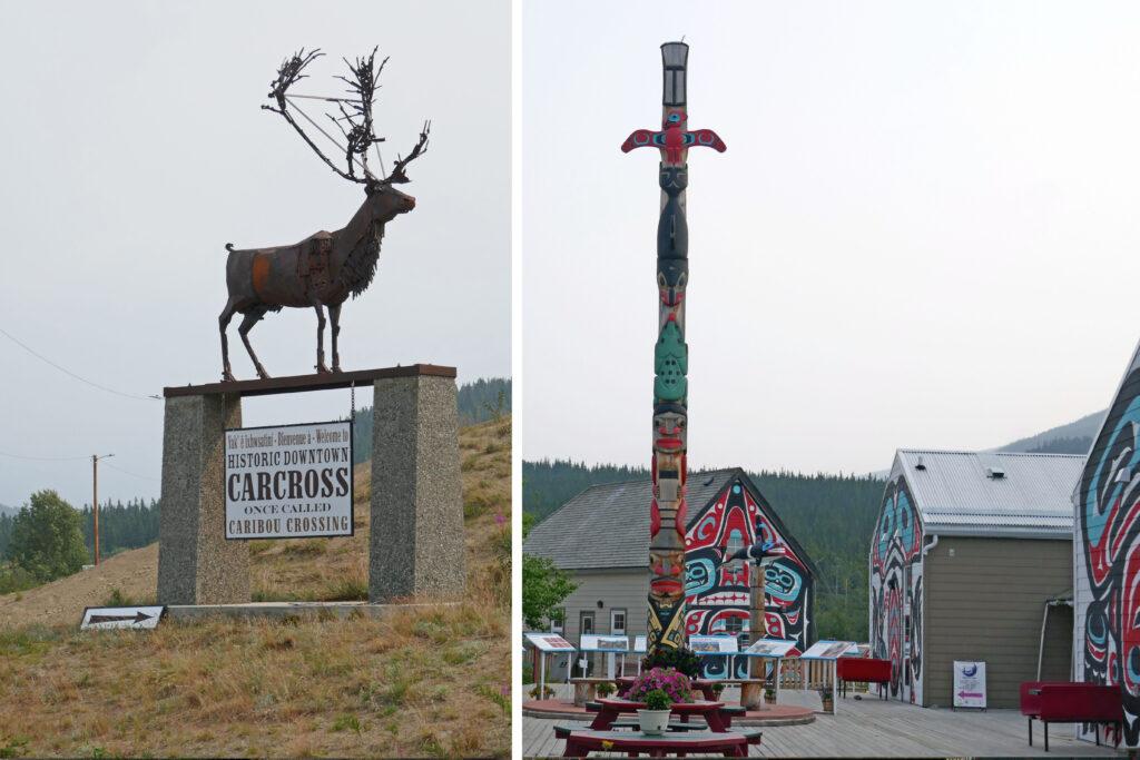 À proximité du Visitor Centre, la Première Nation Tagish a équipé un espace de quelques boutiques et présentations de leurs arts. Les œuvres sculptées, totems et décorations des bâtiments représentent les 6 clans de la nations Tagish.