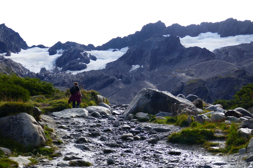 Nous avions envisagé, si le délai était suffisant à la suite du bateau, de partir faire la petite randonnée au niveau du Glacier Martial : départ en taxi, retour à pied. Le signe que l’idée était bonne fut donné par la météo favorable et la rencontre sur le bateau d’un couple de français voulant s’y rendre également : de quoi partager un taxi.