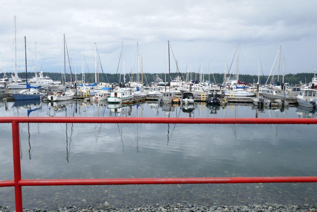 On reprend la route BC-19 qui s’enfonce dans les terres, avant de rejoindre la côte au niveau de Campbell River. À défaut d’être mignonne, la ville semble au moins agréable, du moins le long de sa marina. Les glaces y sont bonnes également :p