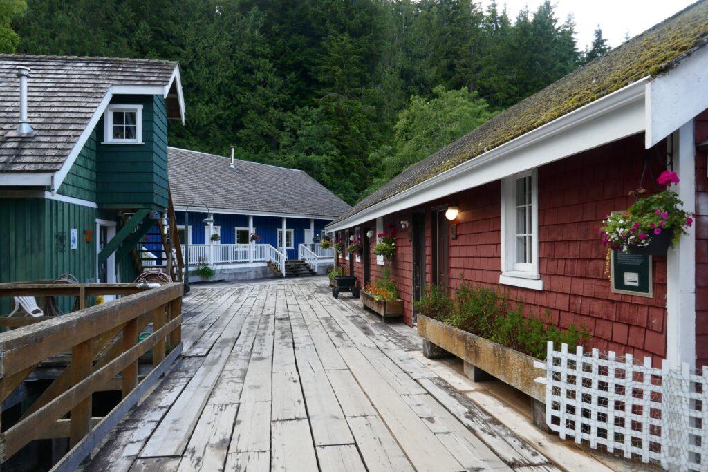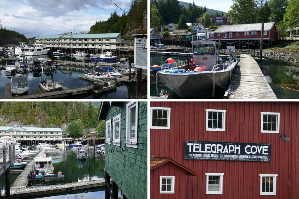 Situé à une vingtaine de kilomètres à l’est de de Port McNeill, petite surprise que Telegraph Cove, un ancien village de pêcheurs et de foresterie, transformé en resort mais ayant conservé une bonne partie de son charme. Un quartier est en construction un peu plus loin, peut-être signe d’un renouveau !