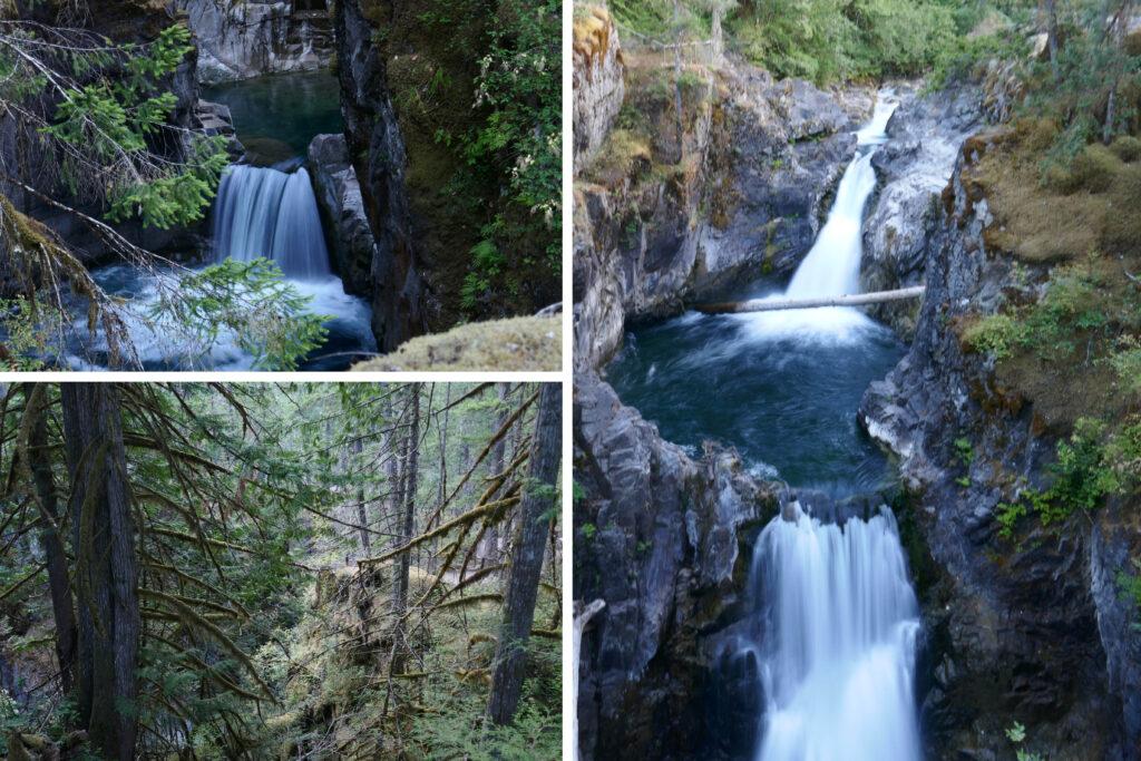 En retrait de la route principale, à une quinzaine de kilomètres de Parksville, se trouve le Parc Provincial Little Qualicum Falls. Outre son camping qui permet de couper la route, il est, comme son nom l’indique, traversé par de petites chutes d’eaux.