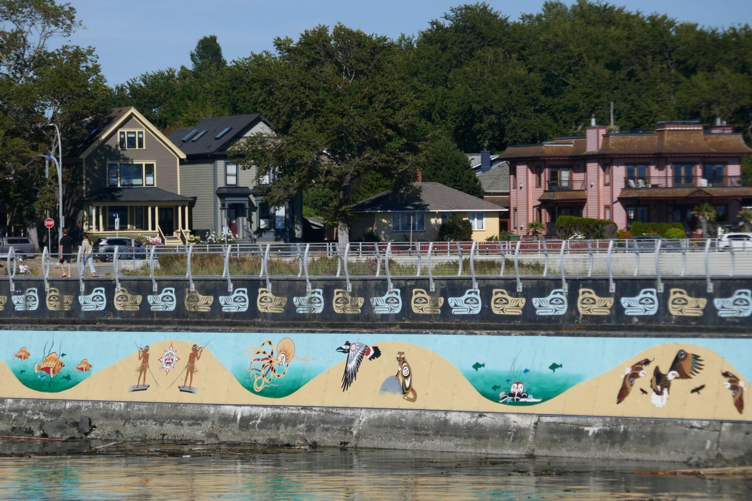 David Foster Harbour Pathway : c’est le nom du sentier piéton qui longe le port intérieur de Victoria. Depuis le Parlement, celui-ci nous mène bientôt à des pontons sur l’eau, qui forment l’une des principales attractions touristiques. C’est Fisherman’s Wharf, où des maisons flottantes aménagées accueillent désormais des touristes et des boutiques, en plus des quelques -rares- vrais habitants qui y demeurent. Les couleurs sont belles, et le cadre demeure agréable malgré le monde.