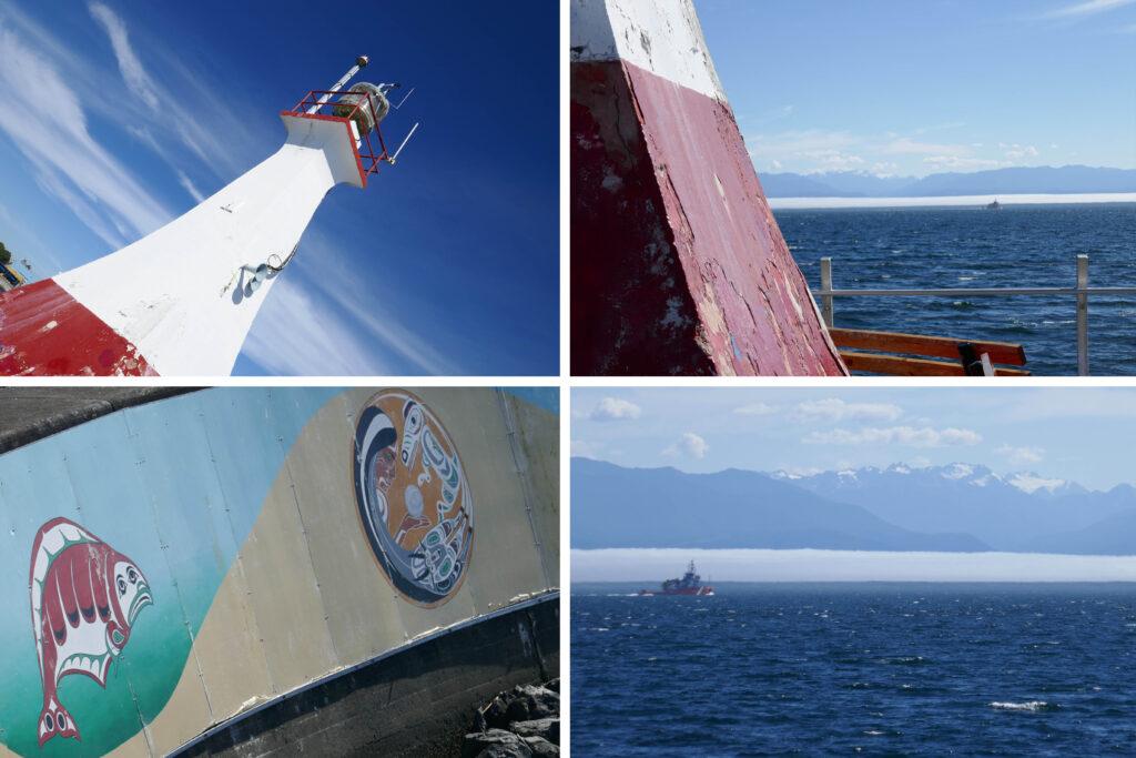 Quittant le secteur du port intérieur, nous traversons vers la façade océanique : Ogden Point et sa digue, décorée par des motifs au style typique des Premières Nations des environs, conduisent au phare Breakwater Lighthouse.